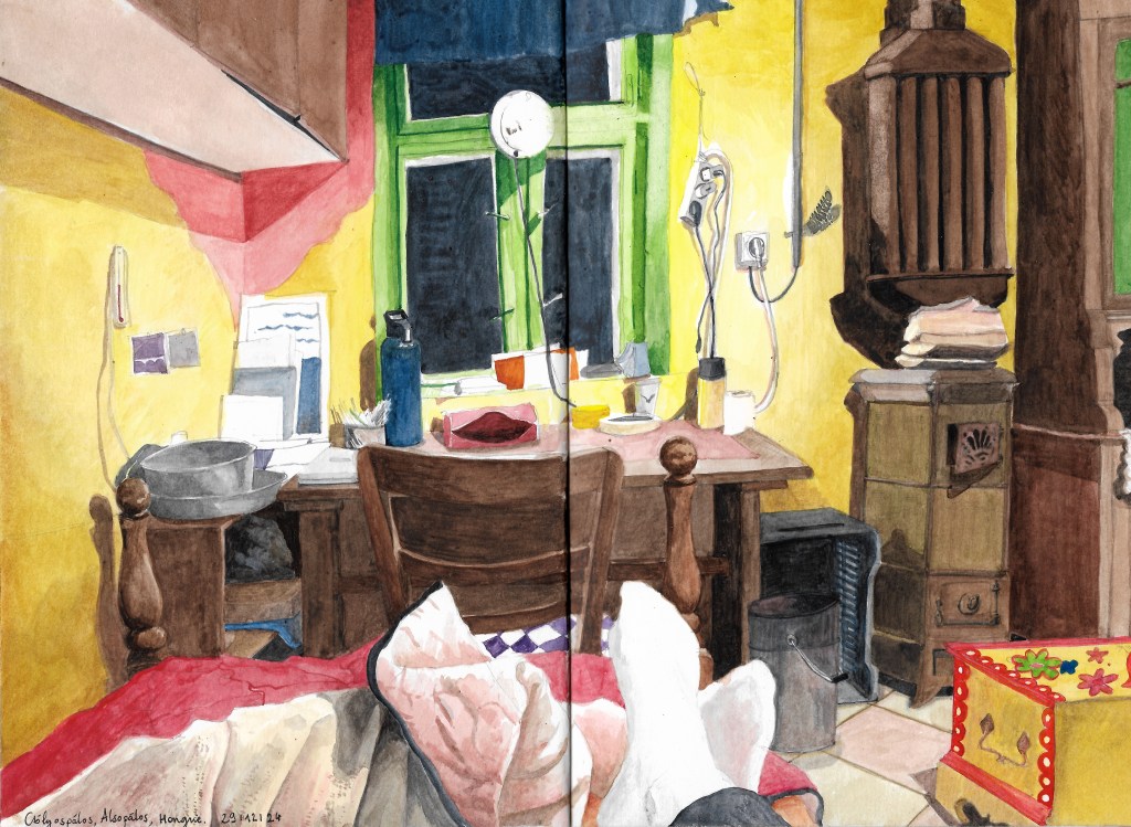Viszlàt à cette maison qui sent le feu de bois, à sa toiture que nous avons refaite, aux murs d’argiles qu’on n’y a maçonnés, enduits et peints à la chaux. Viszlàt la cuisine où il faisait trop chaud, où on s’est réuni chaque matin, chaque midi et chaque soir, pour partager le pain en ayant parfois tout plein de choses à se dire, et d’autres fois, en voulant foutre le camp de ras-le-bol d’avoir le sentiment de tout faire, ou de regarder le patriarcat se déployer dans son expression la plus banale.
